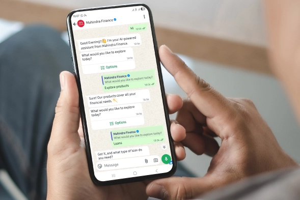 Managing your finances just got easier. With Mahindra Finance on WhatsApp, you can stay connected and get things done anytime, anywhere. Whether it’s a quick query or a service you need, we’re just a tap away!