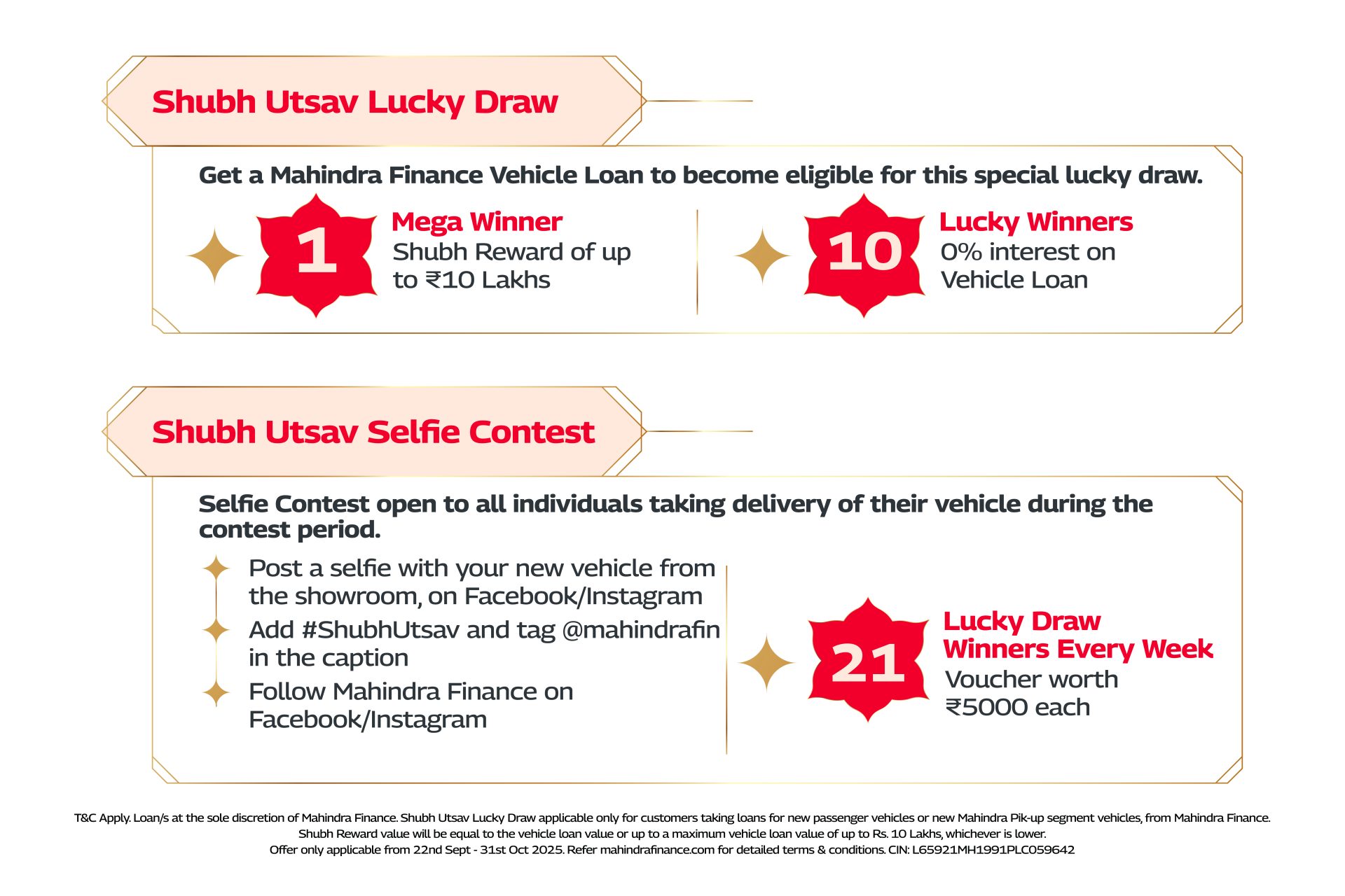 Your #ShubhUtsav adventure starts right now! Share your vehicle purchase moments with us and see if luck’s on your side.